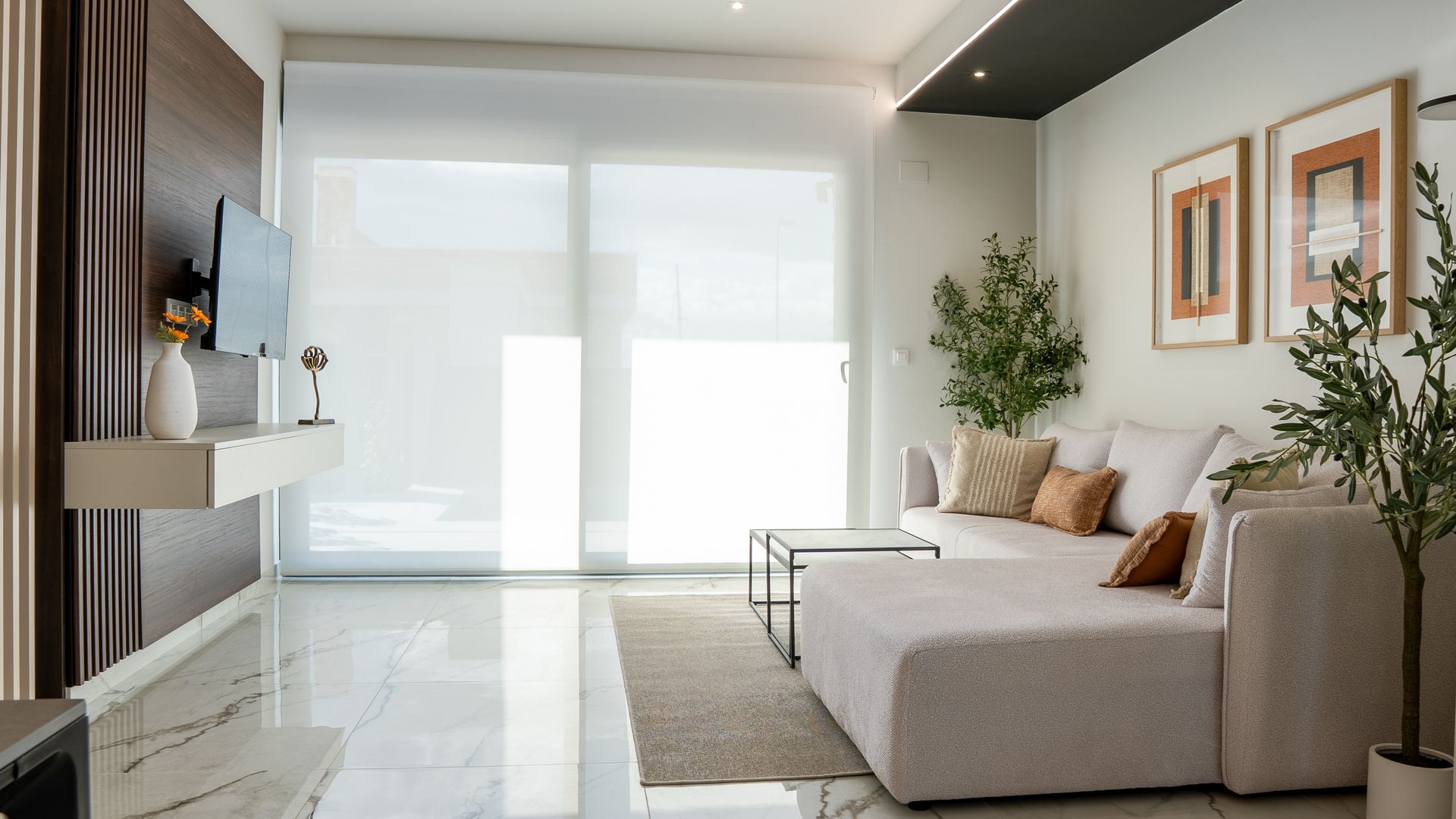 Inside, the homes are equipped with air conditioning, ensuring a pleasant environment year-round. Built-in wardrobes offer efficient storage space, maintaining order and organization in the home. The layout includes three bedrooms and two bathrooms, providing a comfortable and functional space for families or couples seeking a spacious home. Attention to detail in the interior design ensures a modern and welcoming atmosphere, ideal for daily living.