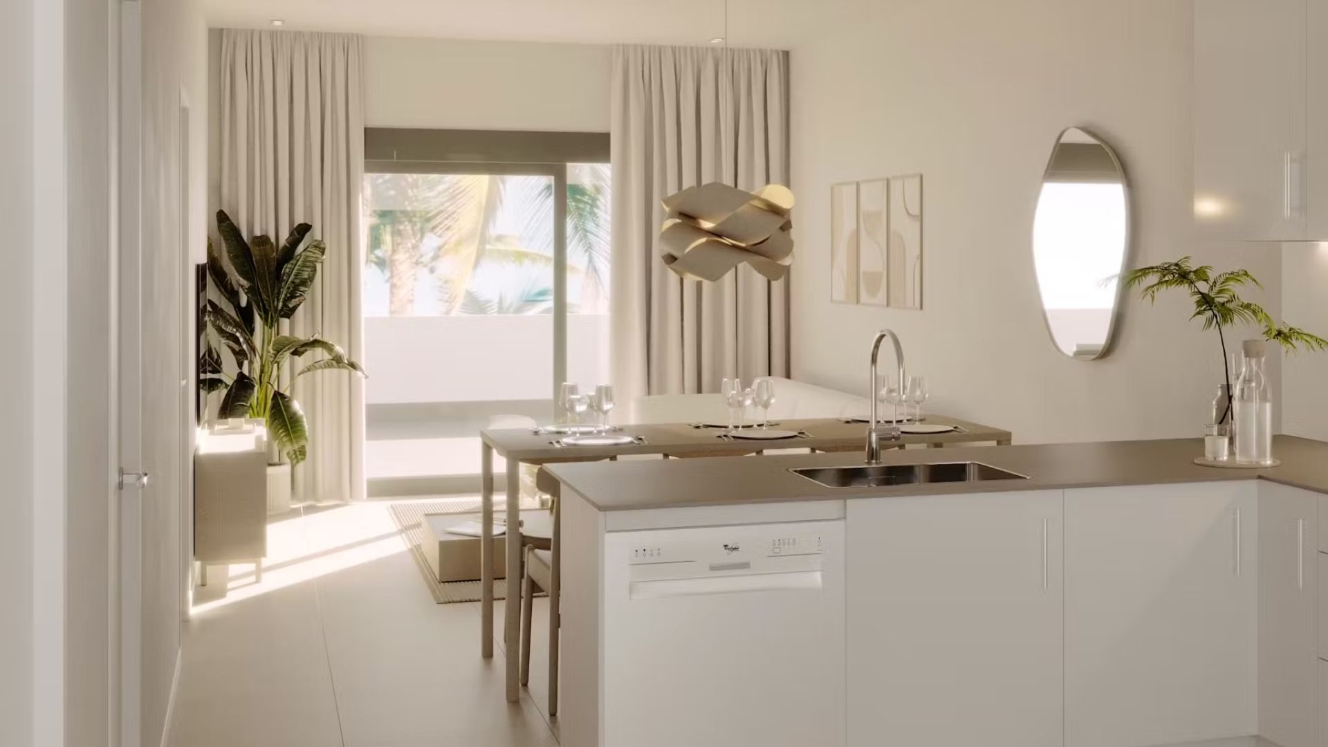 The exterior design of the properties in La Nucía is intended to maximize enjoyment of the Mediterranean climate. All homes feature terraces, perfect for relaxing outdoors and enjoying the views. Additionally, the penthouses have solariums, offering additional space for leisure and relaxation. The exterior finishes are carefully selected to complement the natural surroundings, creating a harmonious and attractive environment. The communal garden areas add a touch of greenery and freshness, providing a common space where residents can enjoy nature without leaving home.